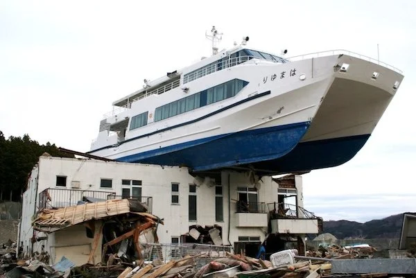 Den elfte mars 2011 blev Ishinomaki en av de allra värst drabbade orterna längs kusten. Räknat i antalet döda och saknade i förhållande till befolkning sägs det att Ishinomaki drabbades hårdast av alla. Av en befolkning på omkring 160 000 spolades knappt 4 000 bort för alltid av den tio meter höga tsunami-vågen. Officiellt motsvarade det 2,2% av invånarna. På samma gång försvann stora delar av bebyggelsen. Det var här fartyg hamnade på toppen av kontorsbyggnader som råkade stå kvar. Det var en ödeläggelse som man väl annars bara ser under krig.