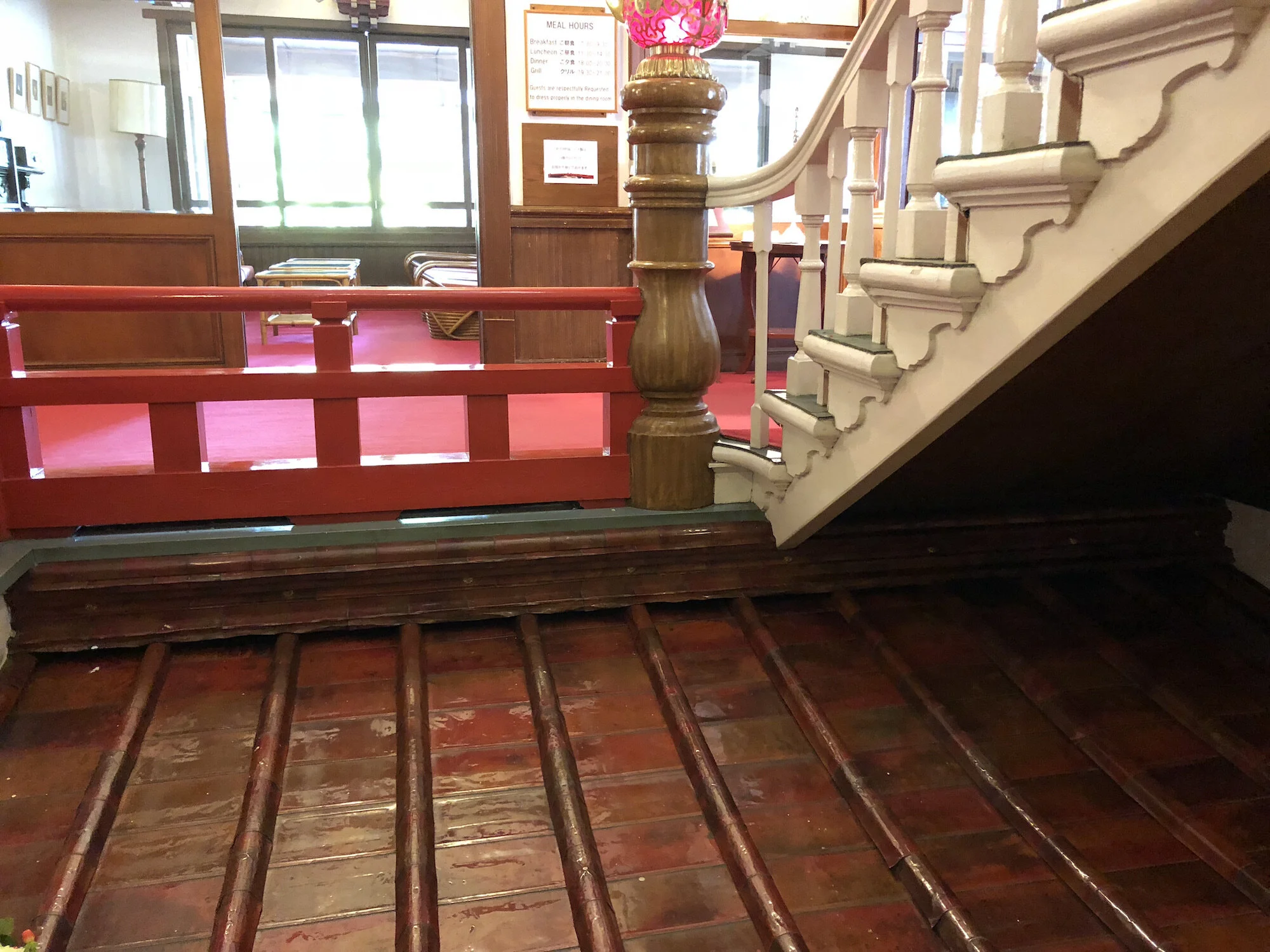 Det gick bra för Zenichiro Kanaya. Han fick ihop finansiärer och kunde 1893 öppna ett modernt hotell på en höjd på andra sidan floden, bara en kilometer bort. Det är dagens Kanaya Hotel, i stort, men inte riktigt, som det var när det öppnade för hundratrettio år sedan. Man stiger in i lobbyn och upptäcker att det är något som inte tycks stämma. Det första intrycket är 20-talsmodernt. Men när man forsätter trappan upp till andra våningen finner man sig plötsligt omgiven av förra sekelskiftets “japonisme”, Japan som hon tolkades i Europa och USA vid den tiden. Det här är typisk Meiji-period (1869-1912).