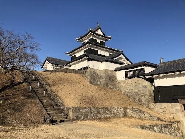 Shirakawa Castle (också känd som Komine Castle) från 1630-talet. Belägrad, stormad, intagen, demolerad och nu återuppbyggd. Här porten in till den innersta delen med sitt torn.