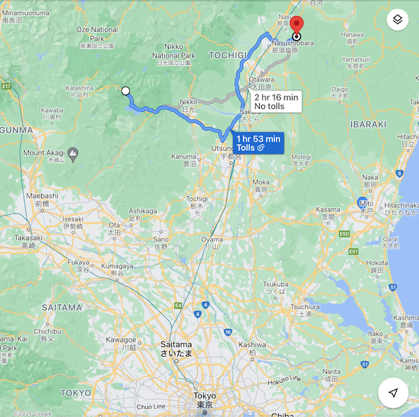 Det är eftermiddag när jag kör tillbaka genom Nikko, ned till slättlandet och Tohoku Expressway. Bara knappt två timmar till Ashino. Basho tog nästan en månad på sig för samma resa.
